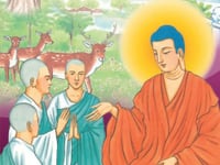一日,释迦牟尼佛游化至波罗奈国,在一棵树下禅坐,面露微笑,身上放出五色祥光。阿...